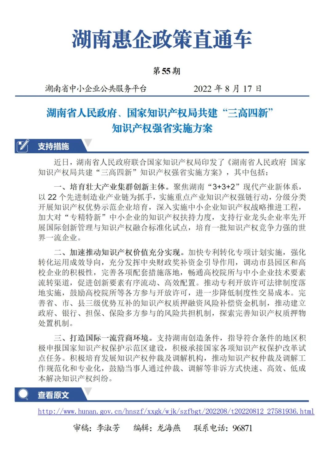 湖南省人民政府、國(guó)家知識(shí)產(chǎn)權(quán)局共建“三高四新”知識(shí)產(chǎn)權(quán)強(qiáng)省實(shí)施方案