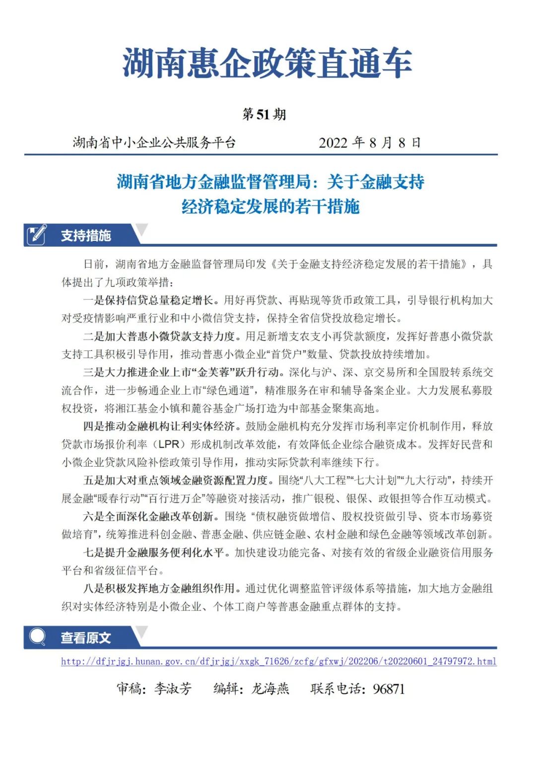 湖南省地方金融監(jiān)督管理局:關(guān)于金融支持經(jīng)濟(jì)穩(wěn)定發(fā)展的若干措施