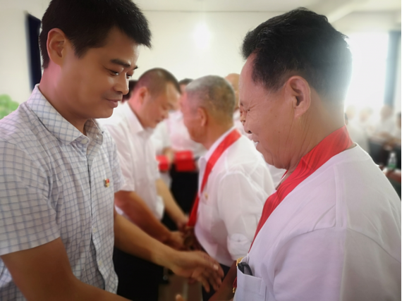 ▲胭脂湖街道領導班子成員為50年及以上黨齡老黨員頒發紀念章