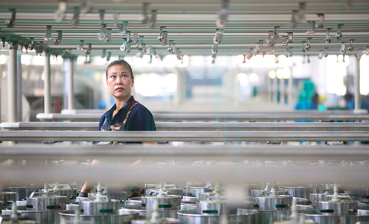 鑫海公司生產車間里工人在仔細檢查線繩質量。鐘祖彪攝
