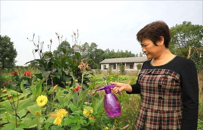 (南洞庭蘆葦場永勝社區(qū)安置點王愛云正在澆花)