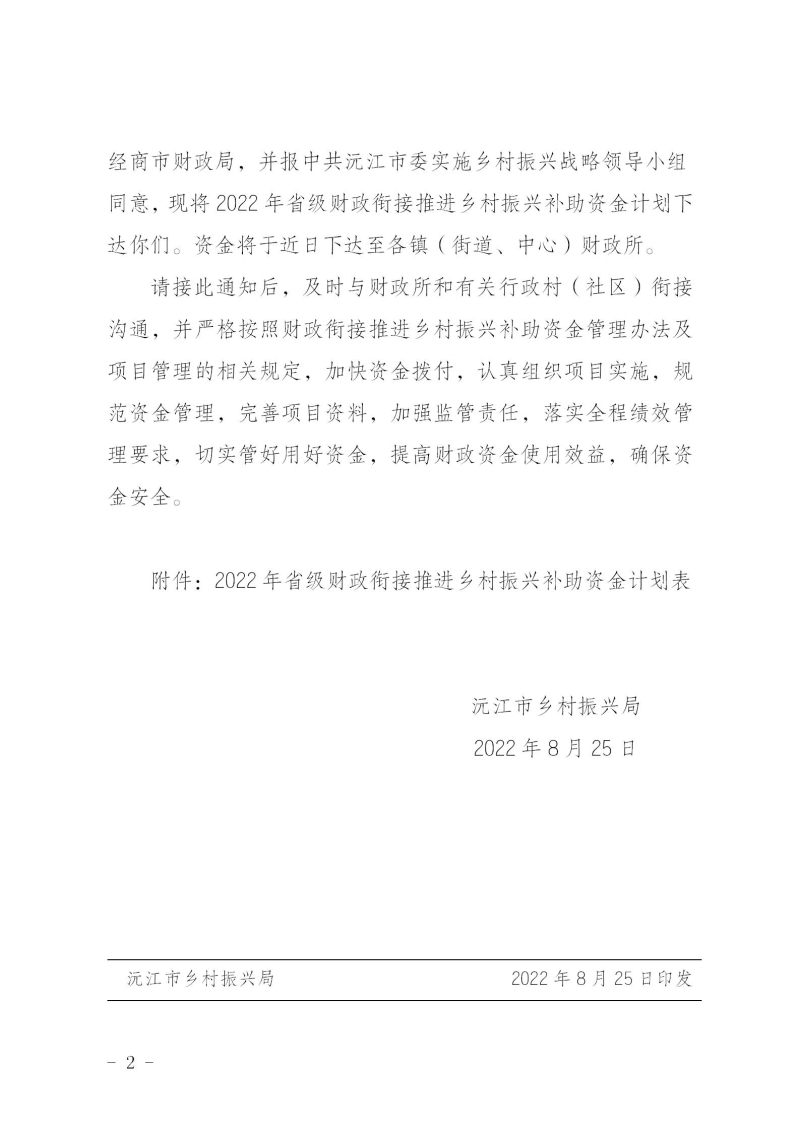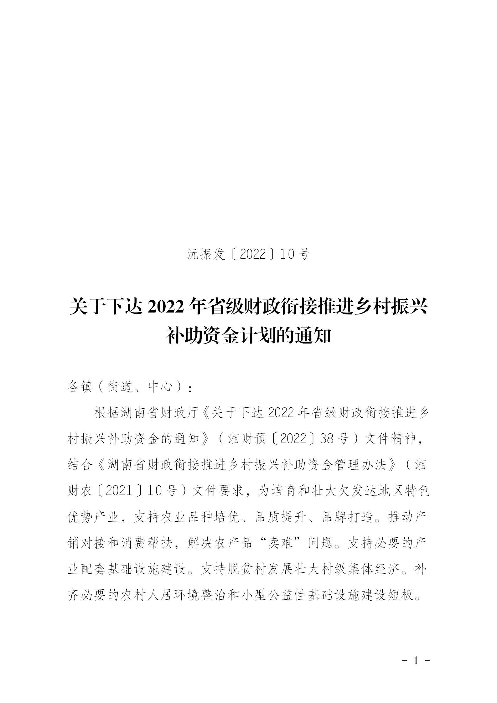 沅振發〔2022〕10號 關于下達2022年省級財政銜接推進鄉村振興補助資金計劃的通知.pdf