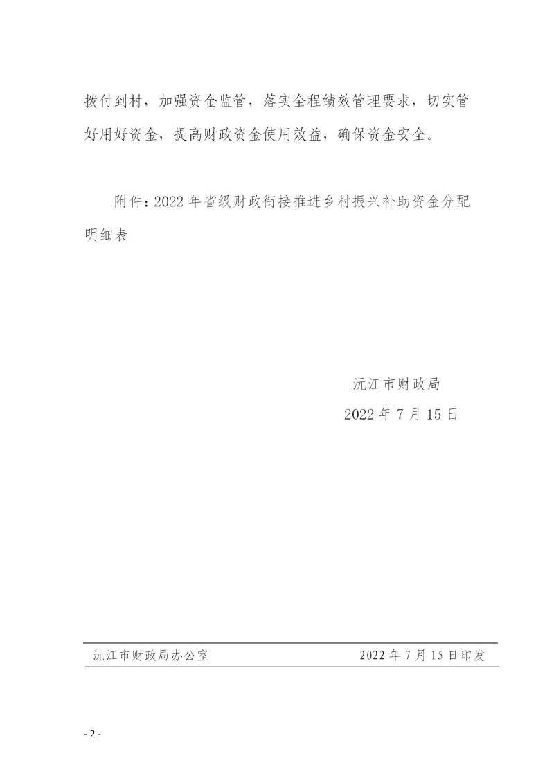沅江市財政局關于下達2022年省級財政銜接推進鄉村振興補助資金的通知.pdf