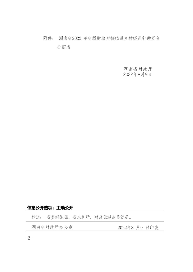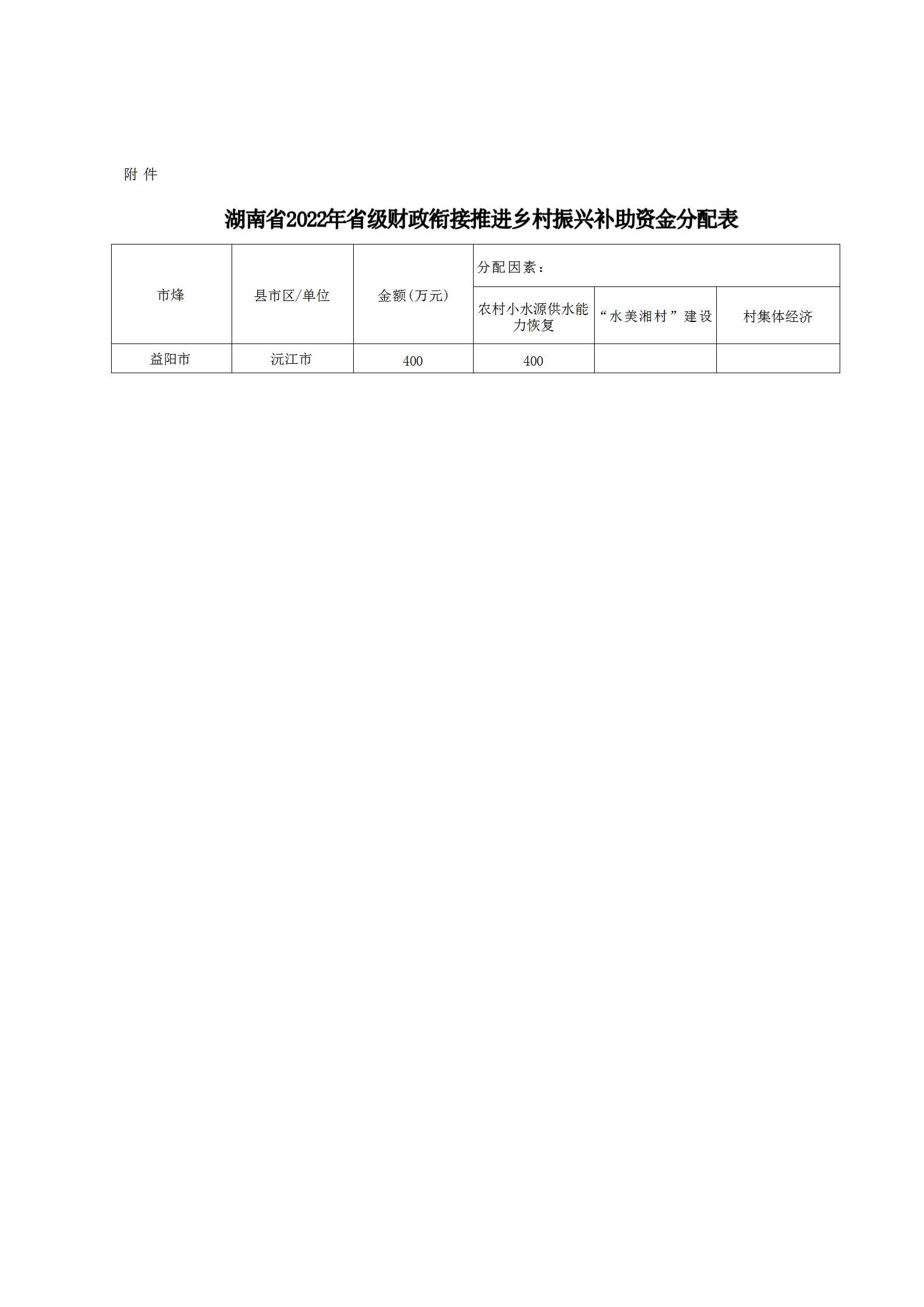 湘財預〔2022〕190號 關于下達2022年省級財政銜接推進鄉村振興補助資金的通知