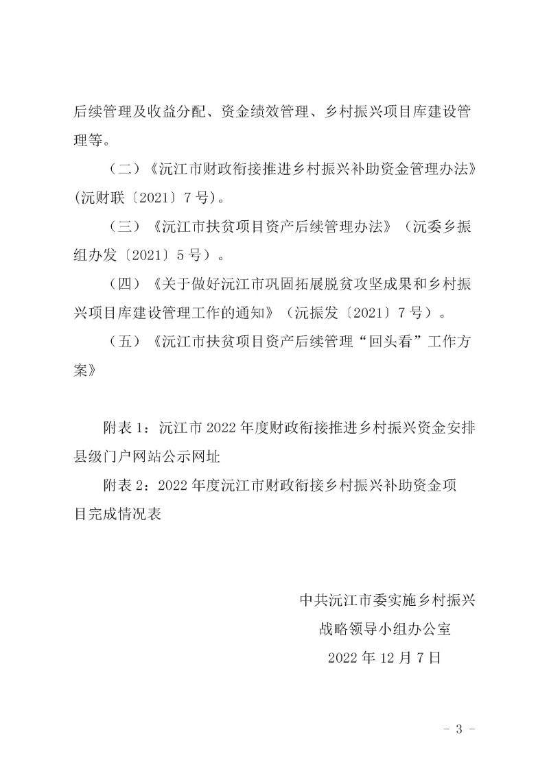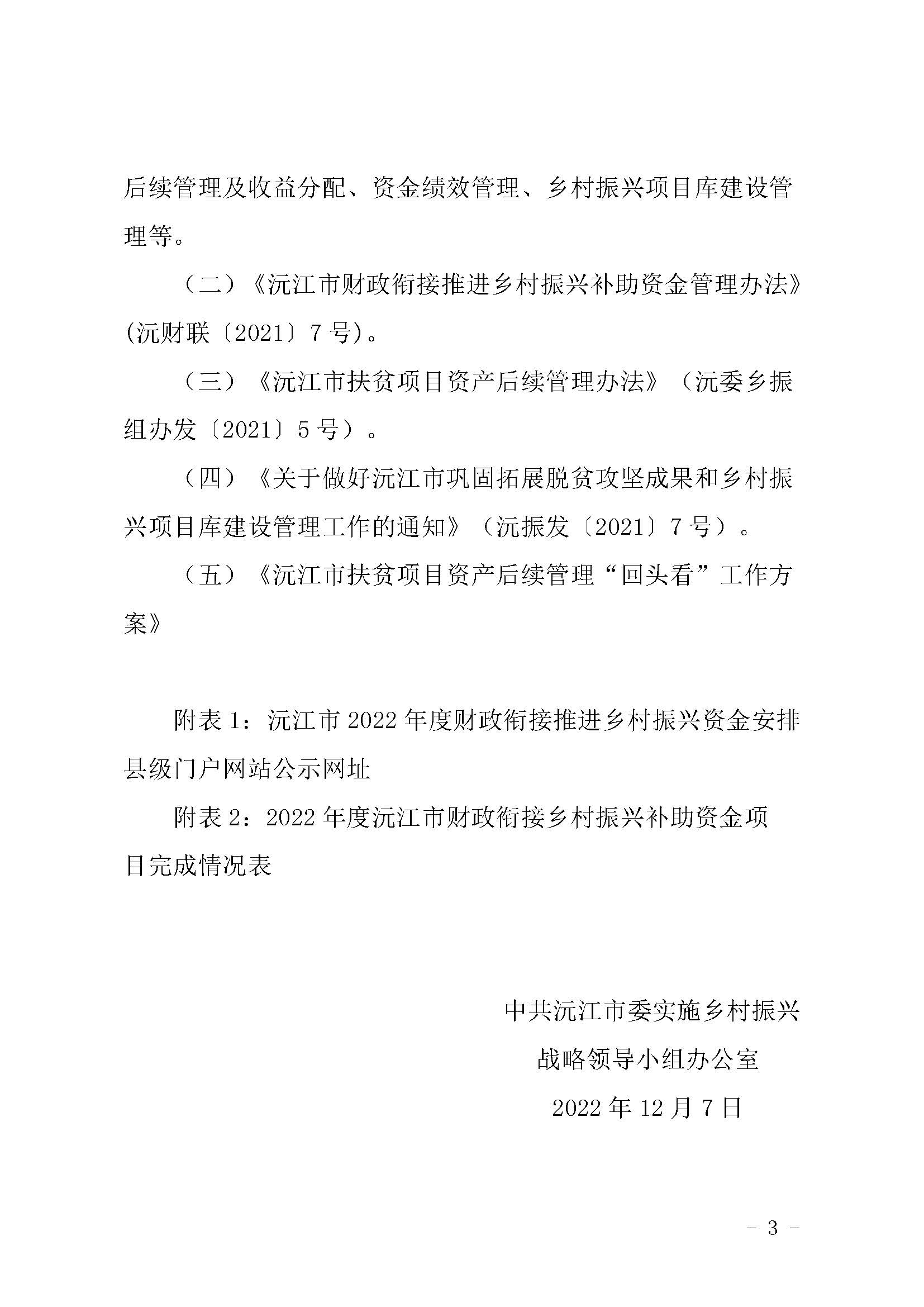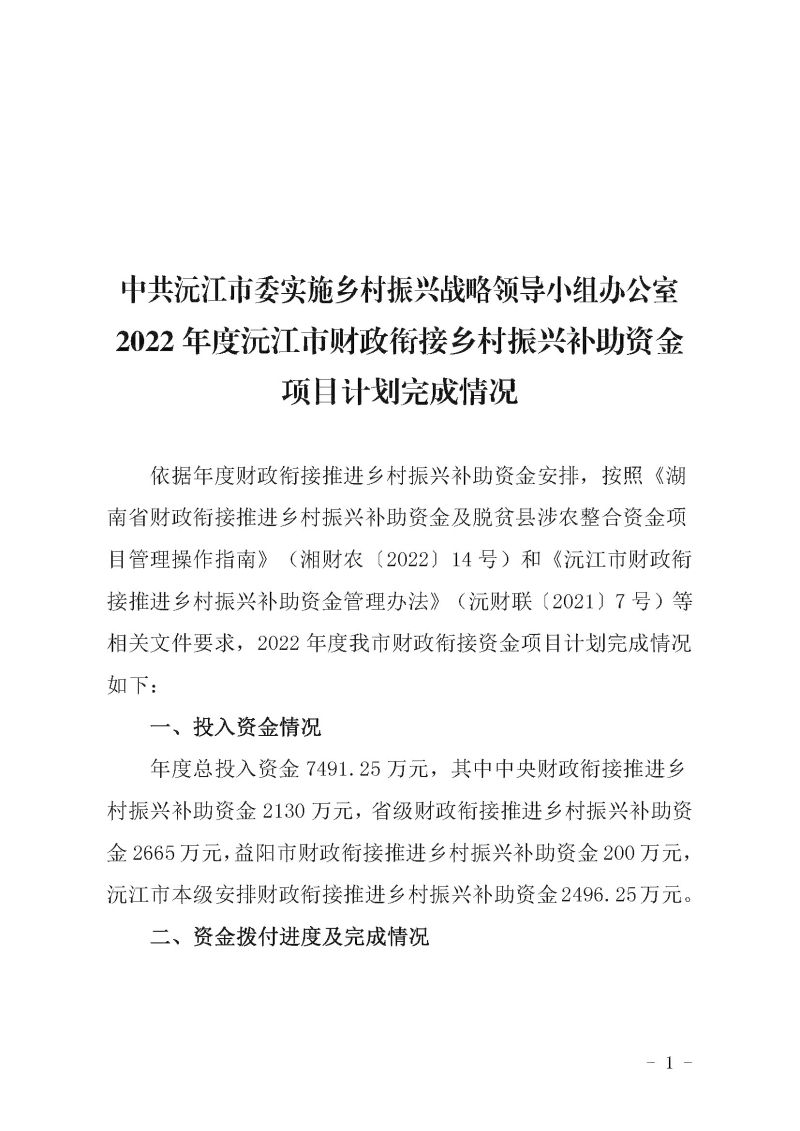 2022年度沅江市財政銜接鄉村振興補助資金項目完成情況