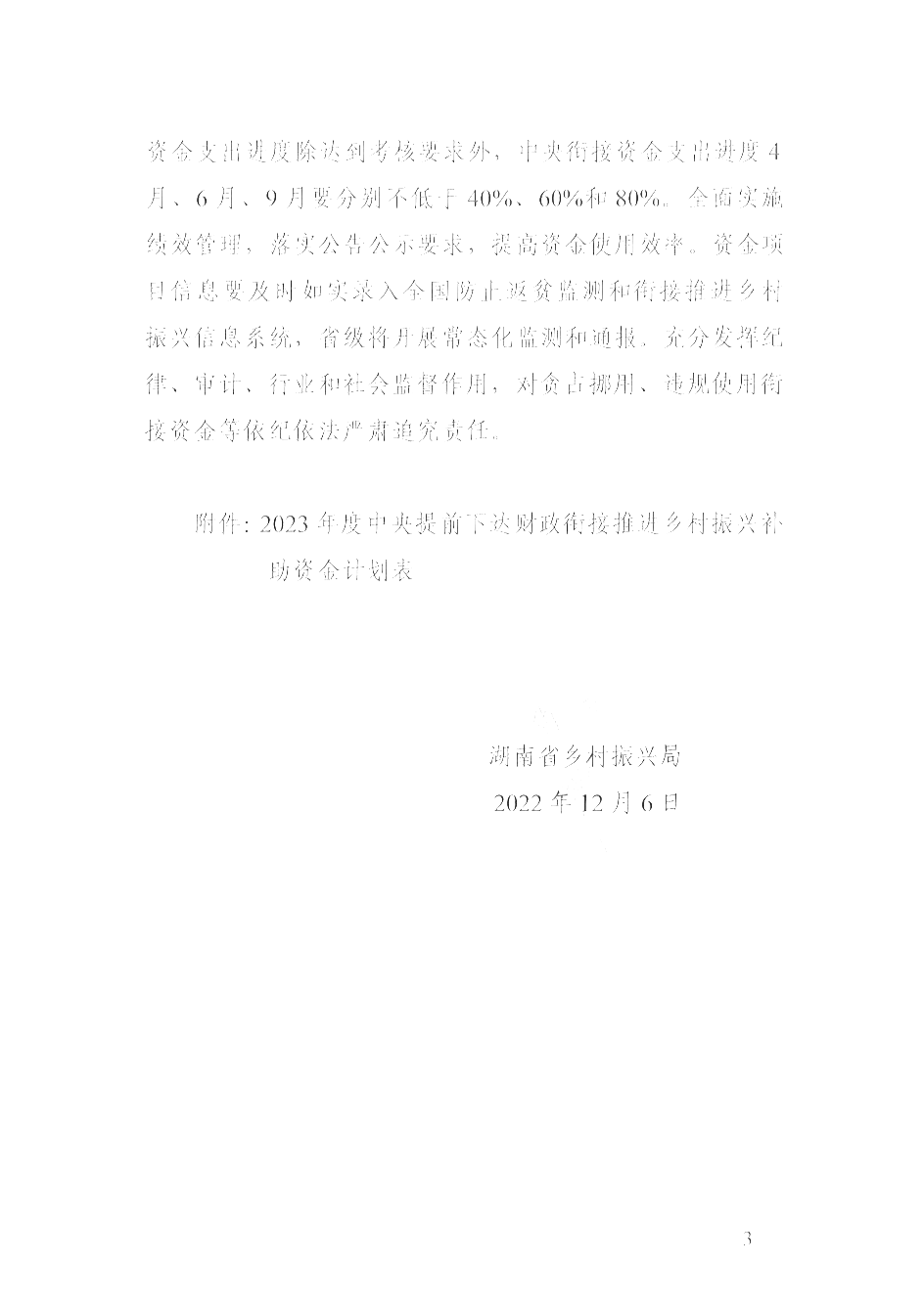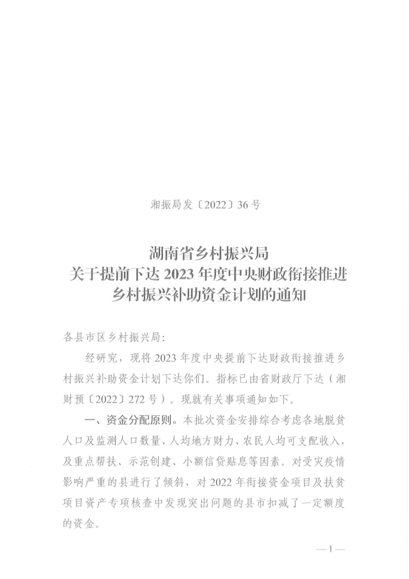 湘振局發(fā)〔2022〕36號關(guān)于提前下達2023年度中央銜接資金計劃的通知