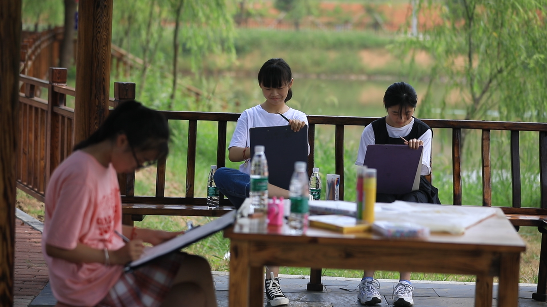學生劉子晗握著自己的畫筆,驕傲地說道:“這里是我的家鄉(xiāng),所以我想把我家鄉(xiāng)的美給畫出來!