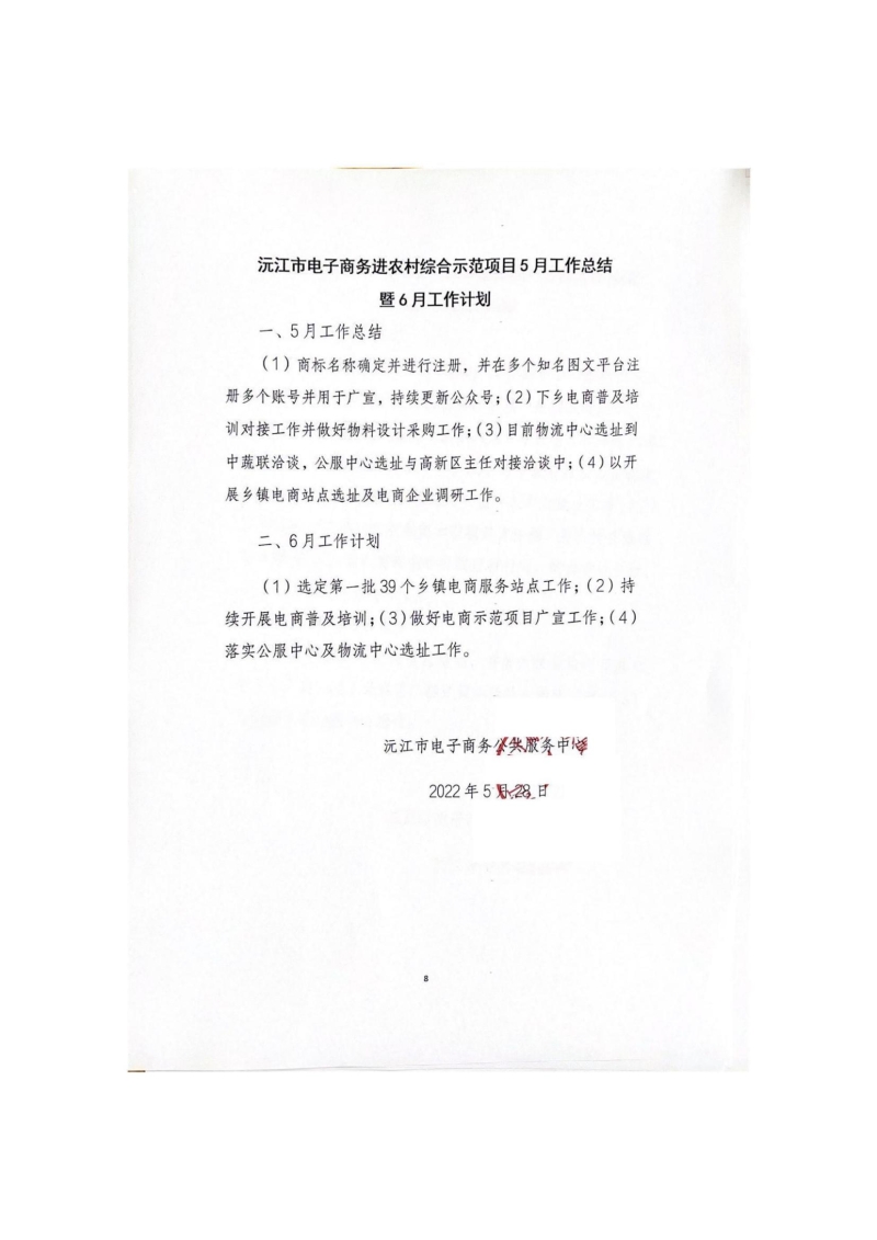 沅江市電子商務進農村綜合示范項目5月工作總結暨6月工作計劃