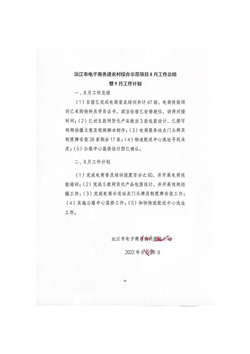 沅江市電子商務進農村綜合示范項目8月工作總結暨9月工作計劃