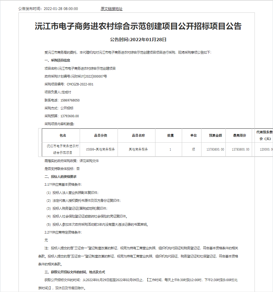 沅江市電子商務進農村綜合示范創建項目公開招標項目公告