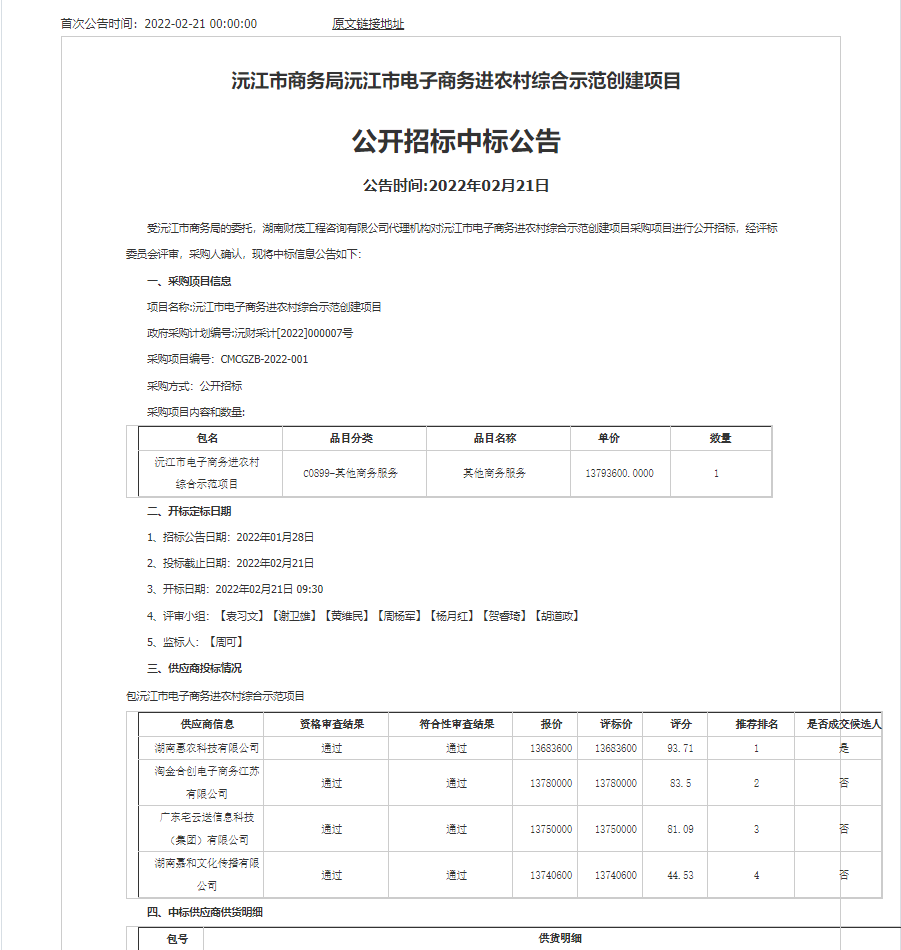 沅江市商務(wù)局沅江市電子商務(wù)進(jìn)農(nóng)村綜合示范創(chuàng)建項(xiàng)目公開招標(biāo)中標(biāo)公告
