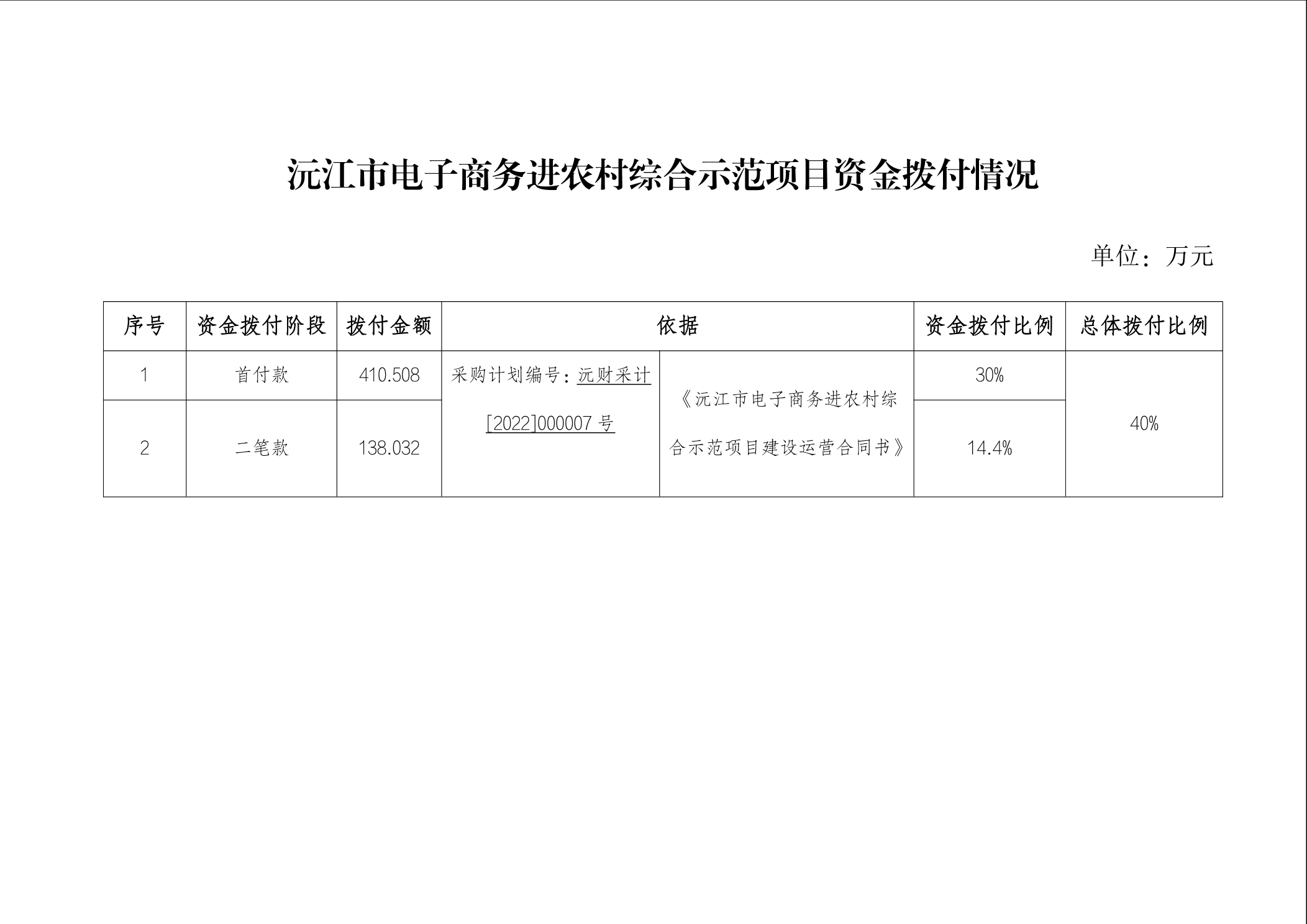 沅江市電子商務進農村綜合示范項目資金撥付情況