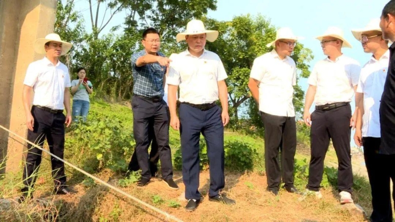 8月17日下午,酷暑難當,沅江市委書記楊智勇頂著烈日來到南嘴鎮和諧村、共華鎮東合村以及草尾鎮四興河等地調度抗旱工作。市領導周軍、謝貴等一同調度。