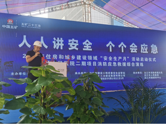 6月26日上午,市住房和城鄉建設局在市人民醫院二期項目部舉行了2023年消防應急救援綜合應急演練。