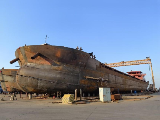 湖南桃花江游艇制造有限公司正在建造的5000噸級散貨船。