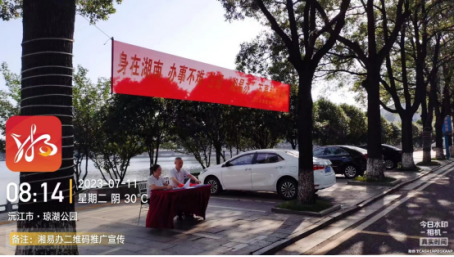 7月11日,農(nóng)業(yè)農(nóng)村局政務(wù)服務(wù)窗口工作人員在湖心公路開展“湘易辦App”宣傳推廣活動(dòng)。