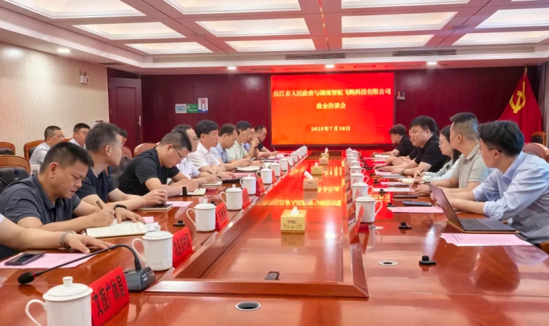 7月30日,湖南智航飛購科技有限公司董事長戴旺帶隊來沅考察洽談。沅江市委書記楊智勇會見戴旺一行,市委副書記、市長羅必勝與戴旺舉行政企洽談會,圍繞推動沅江低空經濟發展進行深入交流并達成系列共識,市領導謝貴、雷亮,沅江高新區管委會主任梁成偉參加。