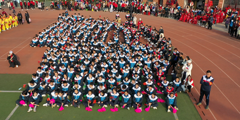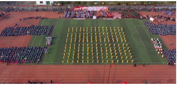 秋日的瓊湖中學(xué),紅旗招展,人聲鼎沸,身著節(jié)日盛裝的同學(xué)們組成整齊的方陣,踏著歡快的步伐,高喊口號,在核心價值觀方陣的引領(lǐng)下依次入場。