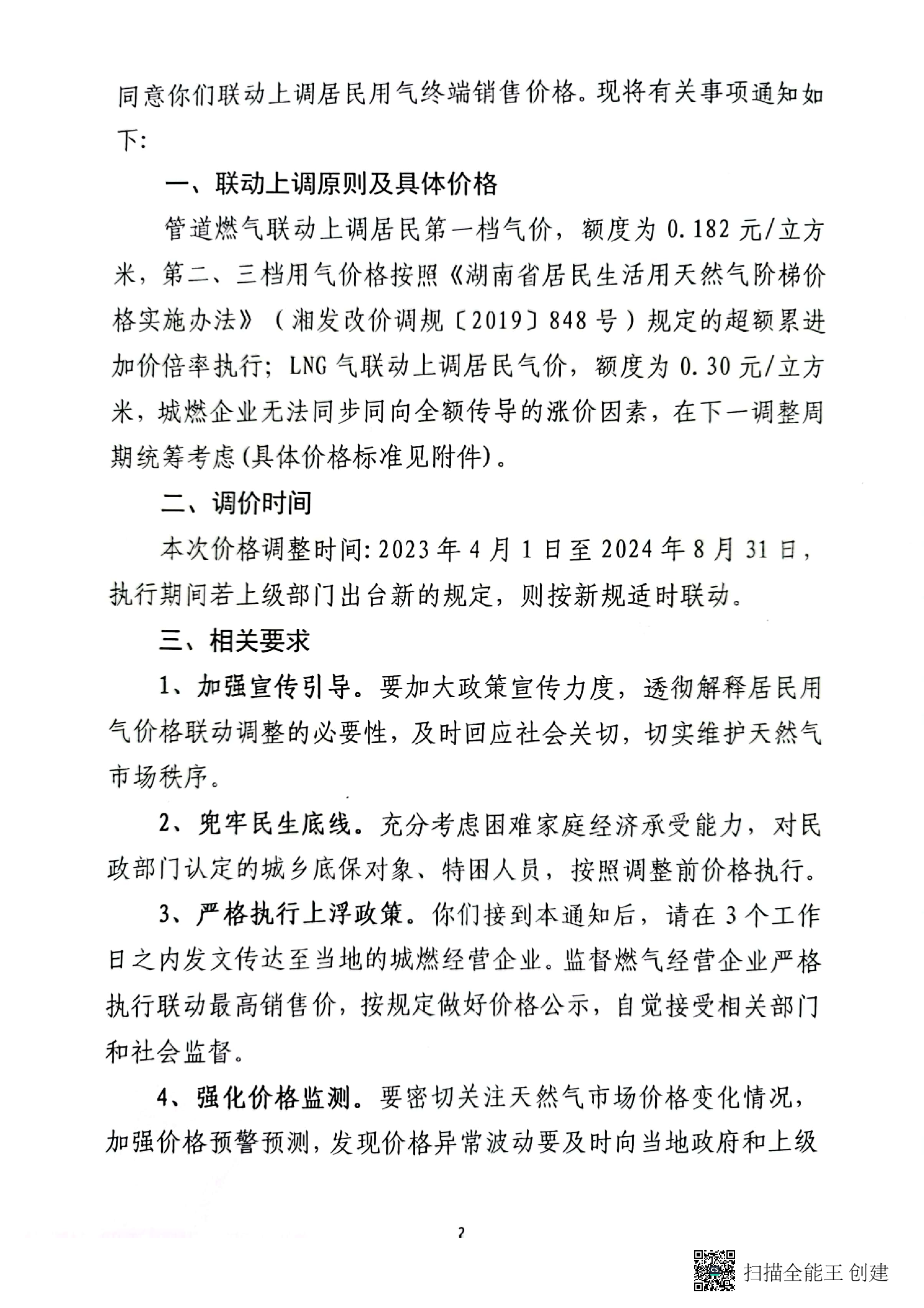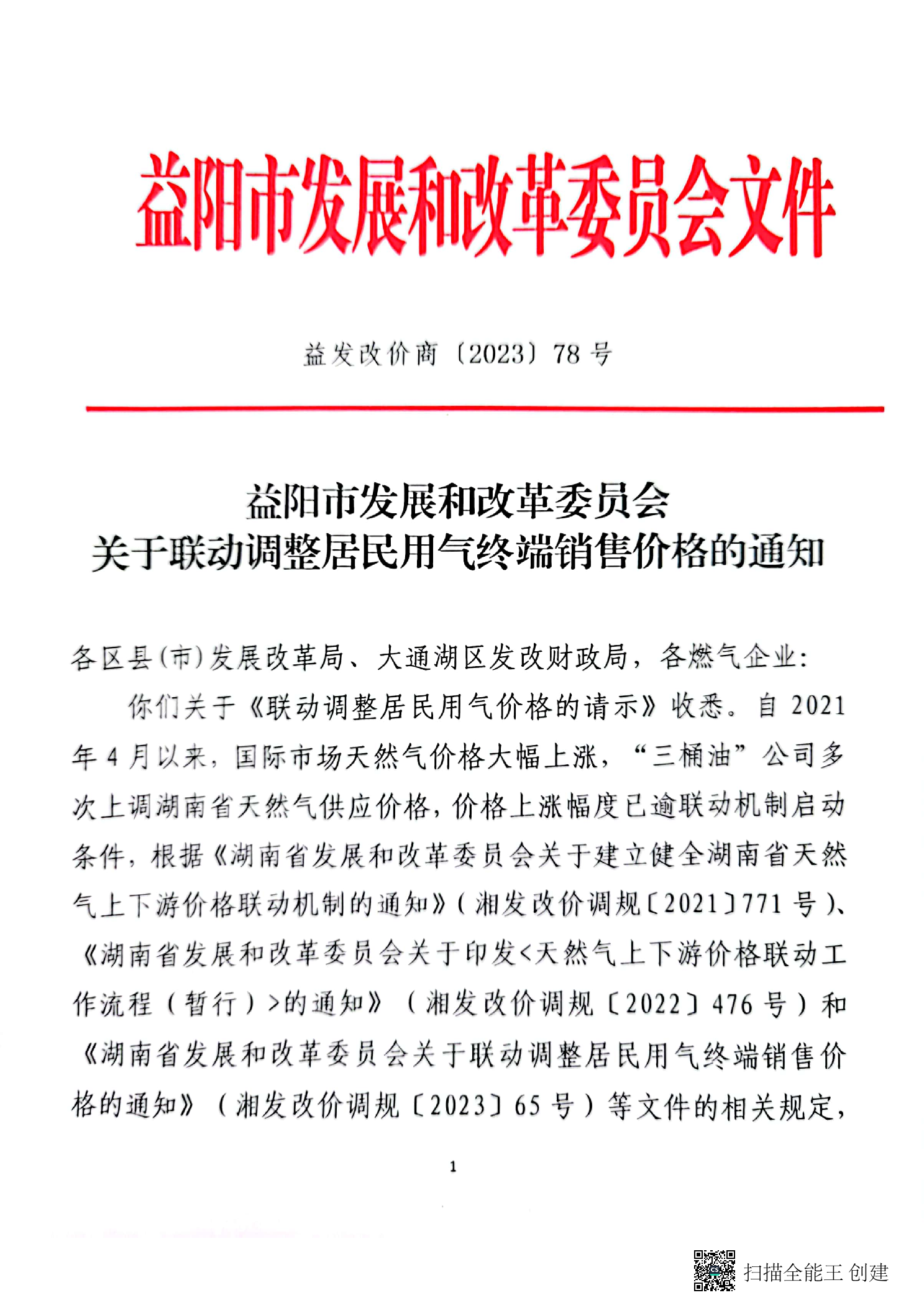 益陽市發展和改革局委員會關于聯動調整居民用氣終端銷售價格的通知