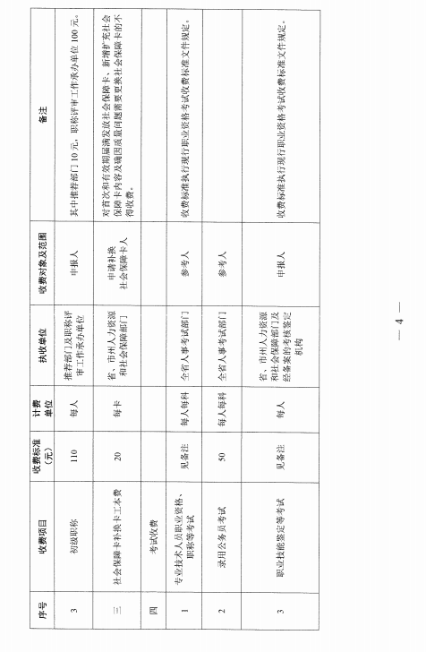 一、全省人力資源和社會保障系統行政事業性收費一律按 本次公布的項目標準執行,具體收費標準見附件。