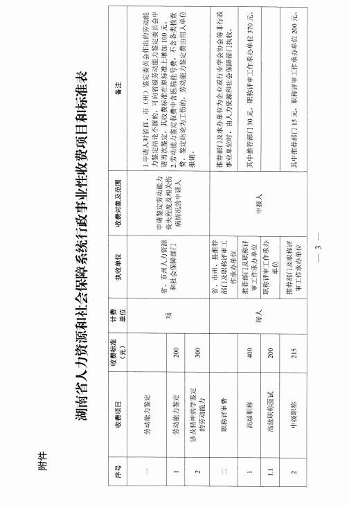 附件:湖南省人力資源和社會保障系統行政事業性收費項目和標準表
